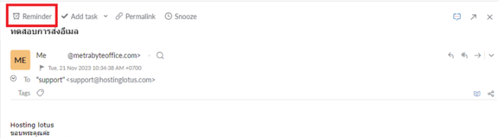 เมื่อทำการส่งอีเมลไปที่ปลายทางแล้วสามารถตั้งเตือนความจำของอีเมลนั้นได้